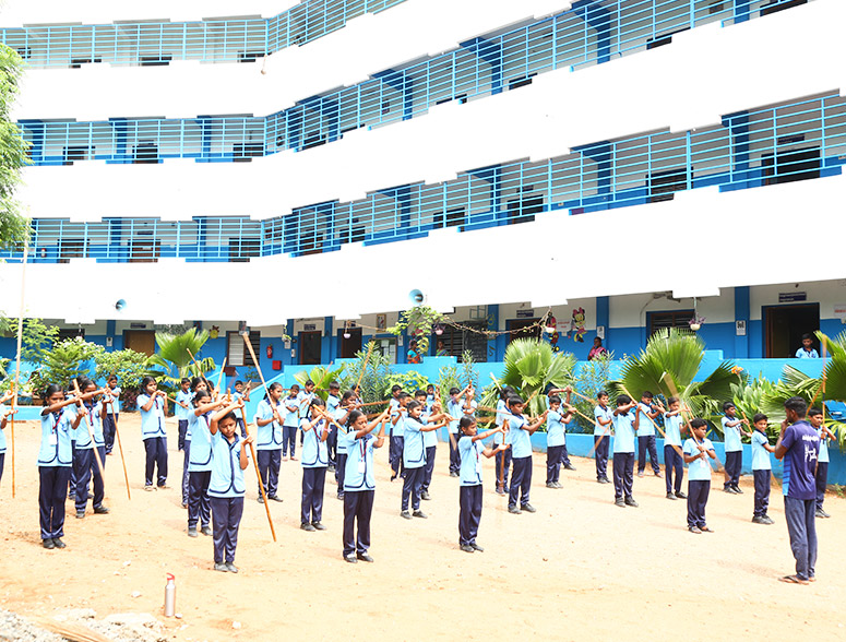 To have a healthy mind and body our students are given yoga classes, karate classes.
